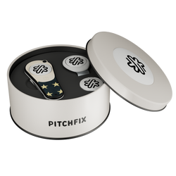The Pitchfix Ultima Golf Divot Tool, presented in a sleek round tin with an included hat clip, offers a sophisticated design and high functionality. Featuring five stylish standard designs crafted by Pitchfix's creative team, this tool combines premium materials with customizable branding options. The ergonomic switch-blade mechanism ensures comfort and ease of use, while the hat clip allows easy access to the ball marker, perfect for marking your ball on the green. The round tin provides additional space for branding, making it an excellent choice for golf tournaments, events, or corporate gifting. With a fresh look and superior performance, the Ultima offers style and practicality.