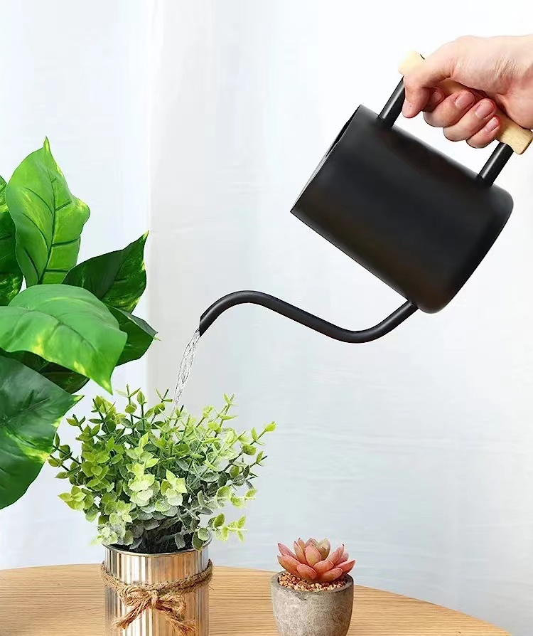 This small metal watering can is the perfect indoor watering can for plants around your home. With a max capacity of 35 fl oz, you can water all your house plants in one go. The little watering can is only 11.2*5.3in making it perfect for easy storage and small homes. This metal plant watering can is made from Stainless Steel, uses advanced welding, and is powder coated, rather than painted which means no rust, scratches, chips, or leaks. Unlike other watering cans for indoor plants which use thin, hard-to-hold metal handles, this gooseneck watering can have a thick, natural wood handle that is easy to hold and won't slip out of your grip. Make watering your houseplants easy and enjoyable! Easily reach all your houseplants with this long-neck watering can