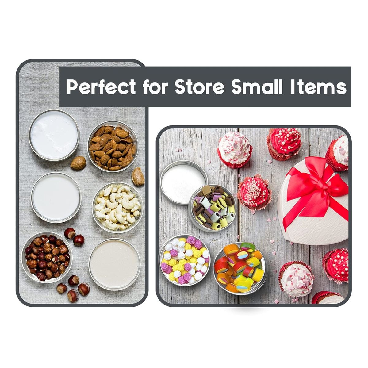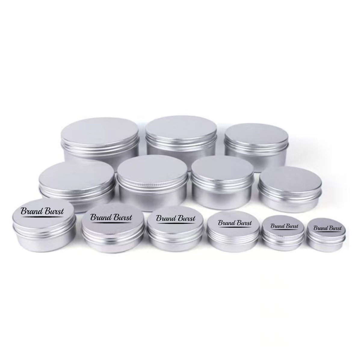 The capacity is 2oz (60ml),made of durable aluminum, which have the features of luster, waterproof, corrosion-resistant, eco-friendly, light weight and convenient to carry. These screw-top lids of containers have no sharp edges, all edges are rounded to prevent scratching your hand. Perfect for DIY lip balms, pills, party favors, candies, mints, vitamins, skincare, makeup samples or loose leaf teas, herbs, medication etc. Customize LOGO and pattern is available.